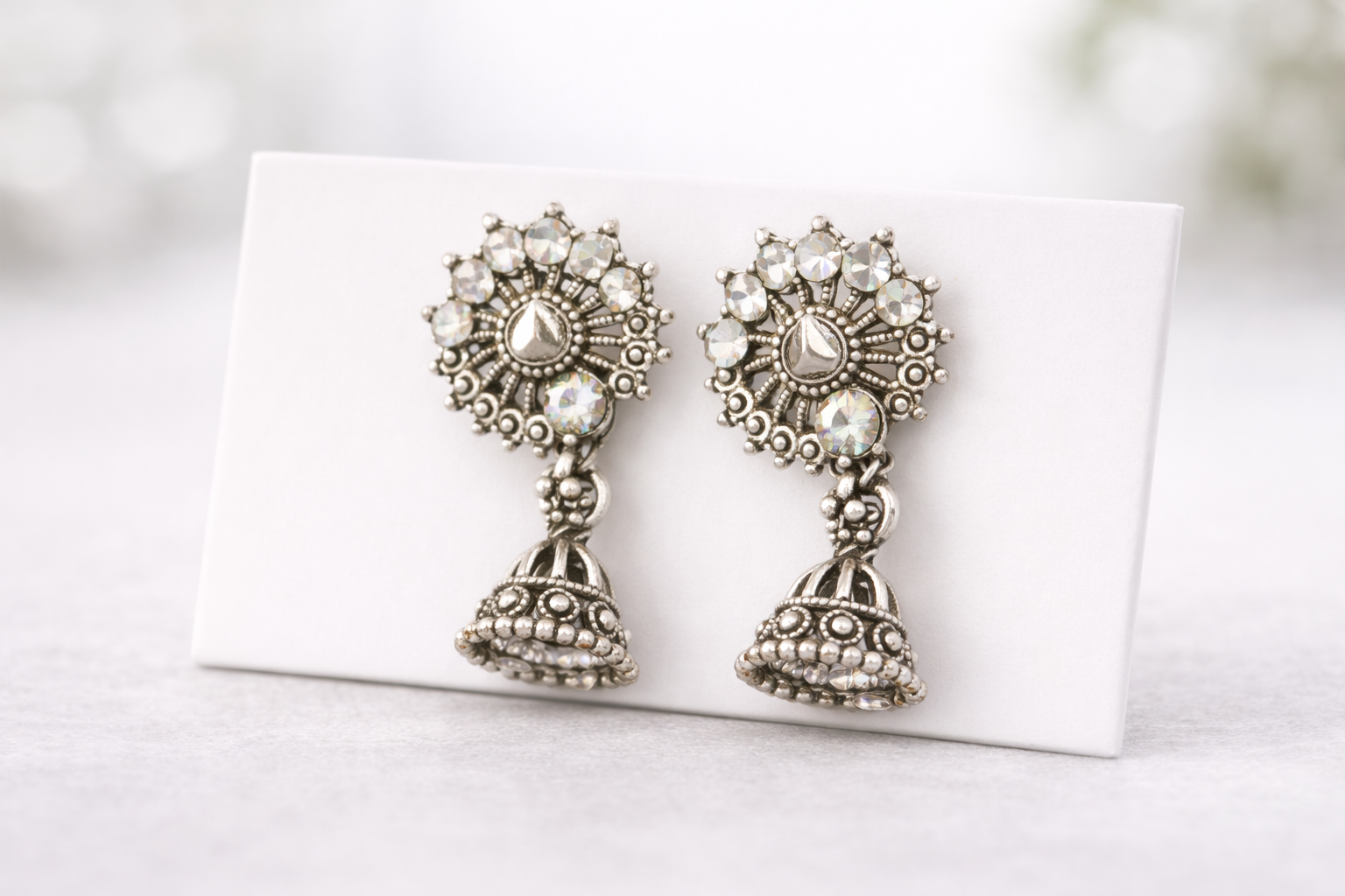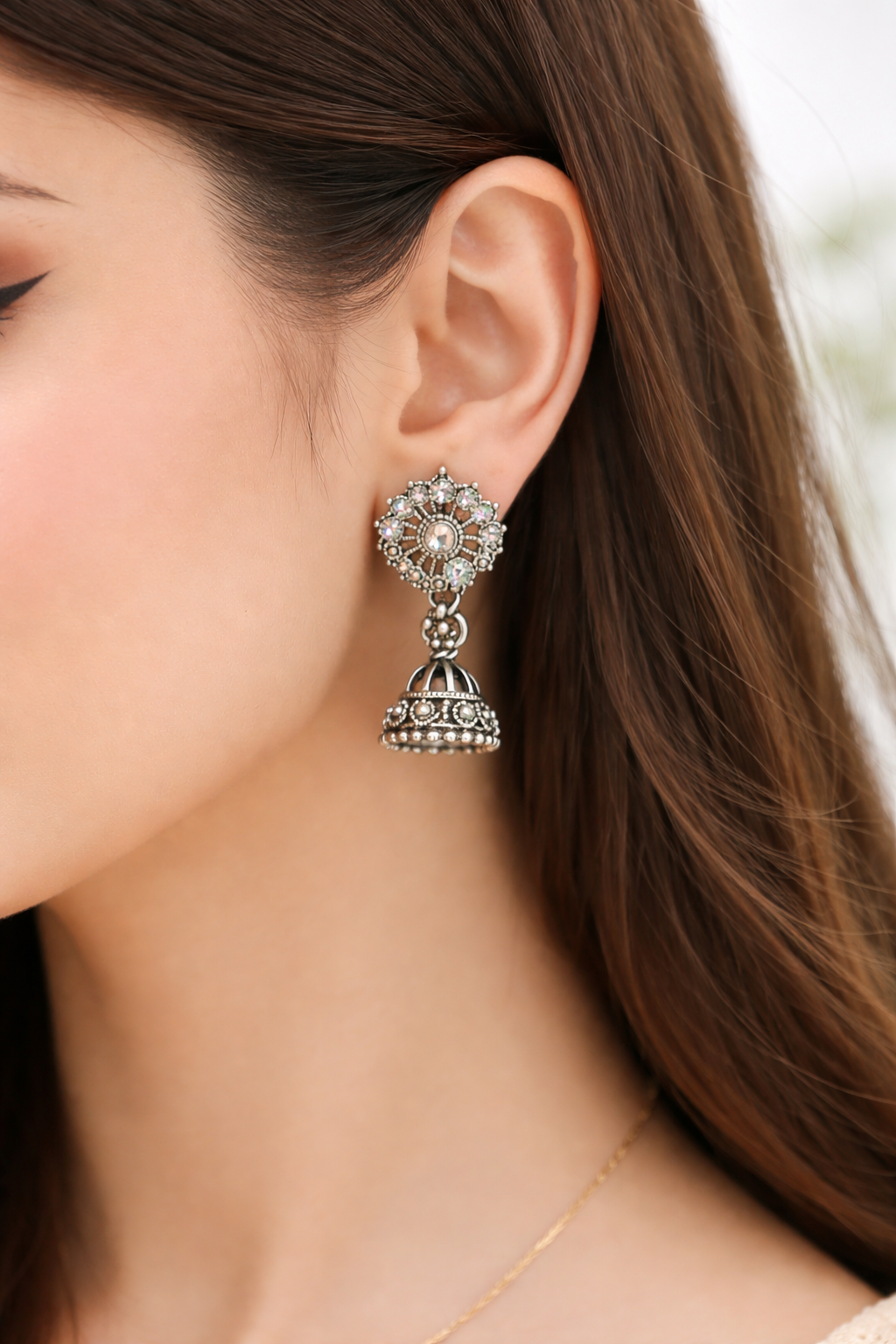 Design: Elegant Floral Crystal Design with Hanging Mini Jhumka