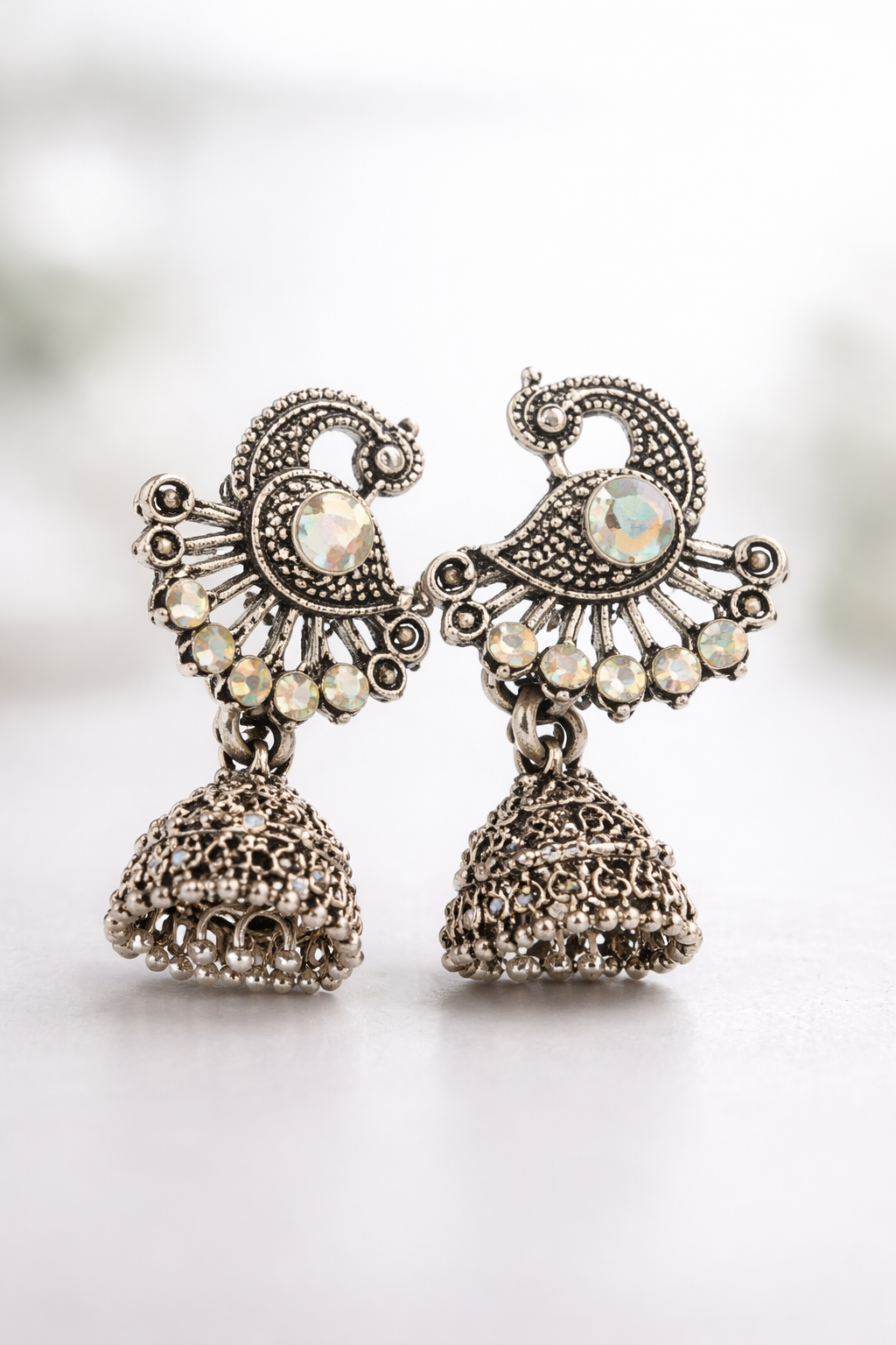 Design: Traditional Peacock Inspired Antique Design with Hanging Jhumka
